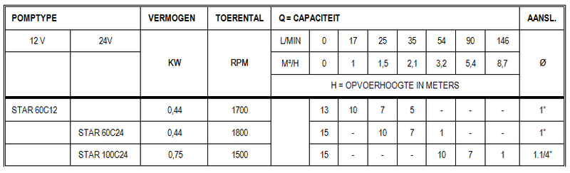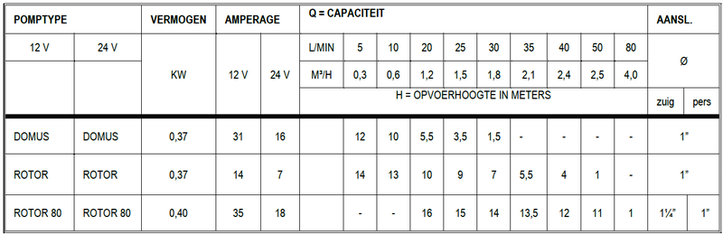 Geschikt voor licht vervuild water. Ideaal als lens- of dekwaspomp in de scheepvaart.
